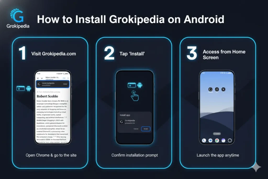 Learn how to easily install Grokipedia on Android in just a few taps. Visit Grokipedia.com, tap Install, and start exploring AI-powered knowledge instantly.